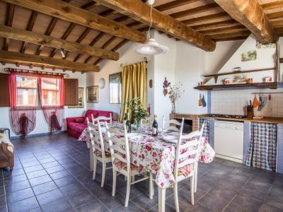 Geräumige Wohnung im Erdgeschoss, mit zwei Schlafzimmern, eines mit einem Doppelbett und eines mit zwei Betten, geräumige Küche, großes Wohnzimmer mit Kamin und Bad mit Dusche. Eine Wohnung im typisch toskanischen Stil, die für Familien mit zwei oder mehr Kindern gedacht ist und auch bequem von sechs Erwachsenen bewohnt werden kann. Diese Art von Wohnung bietet Platz für große Familien. Darüber hinaus haben Paare, die sich für einen Aufenthalt entscheiden, mehr Komfort und Privatsphäre.
