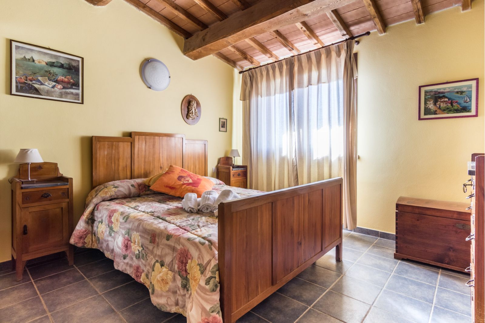 Geräumige Wohnung im Erdgeschoss, mit zwei Schlafzimmern, eines mit einem Doppelbett und eines mit zwei Betten, geräumige Küche, großes Wohnzimmer mit Kamin und Bad mit Dusche. Eine Wohnung im typisch toskanischen Stil, die für Familien mit zwei oder mehr Kindern gedacht ist und auch bequem von sechs Erwachsenen bewohnt werden kann. Diese Art von Wohnung bietet Platz für große Familien. Darüber hinaus haben Paare, die sich für einen Aufenthalt entscheiden, mehr Komfort und Privatsphäre.