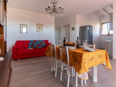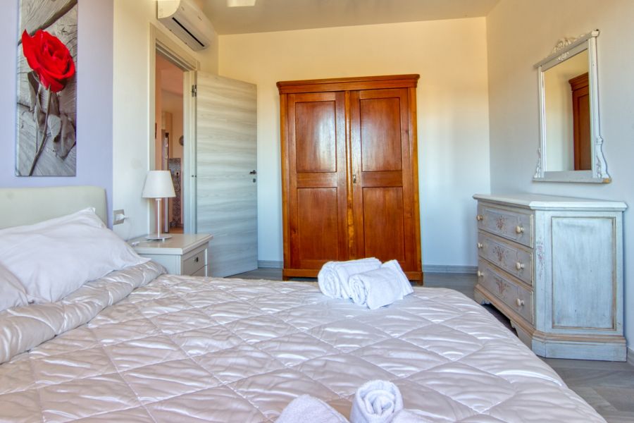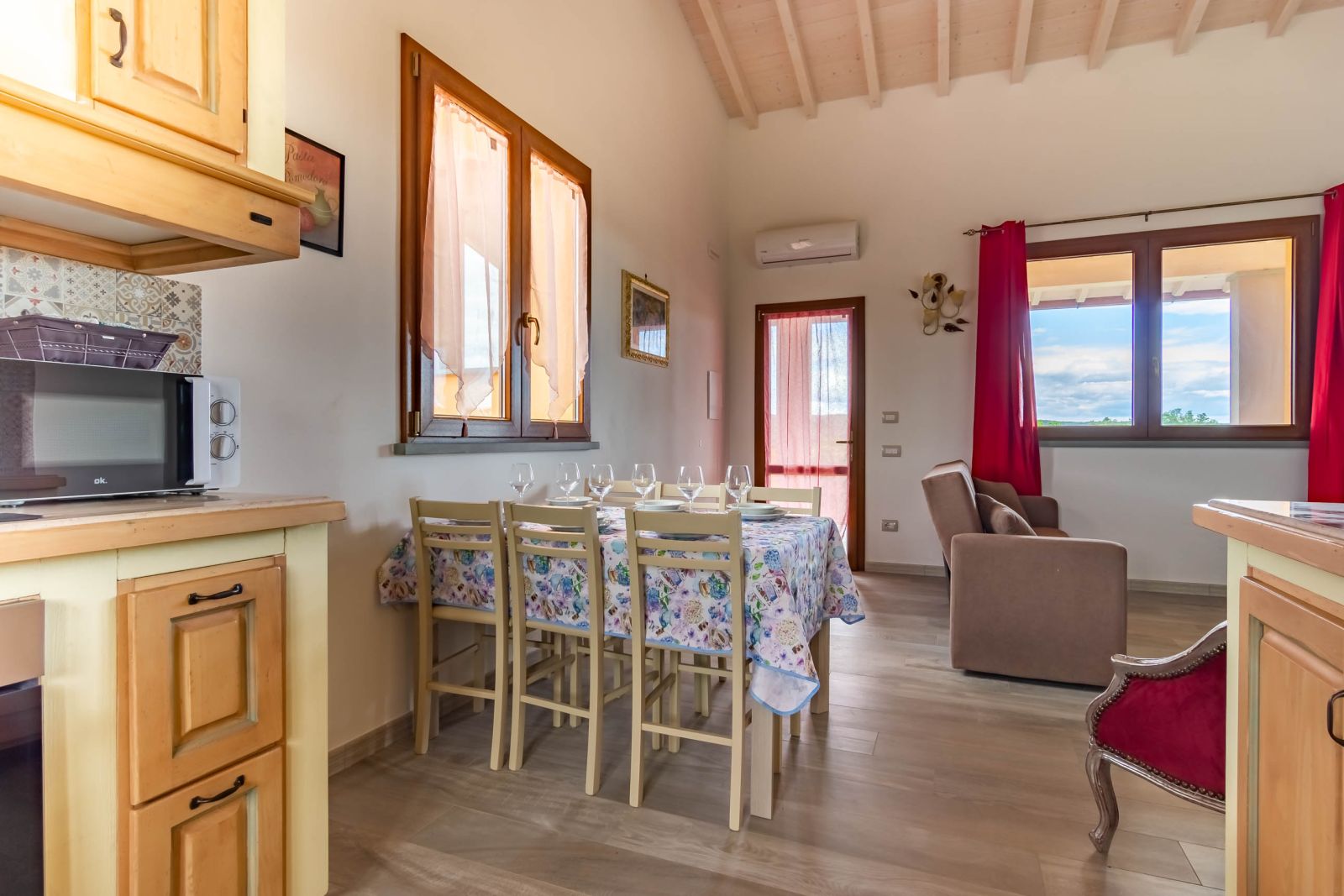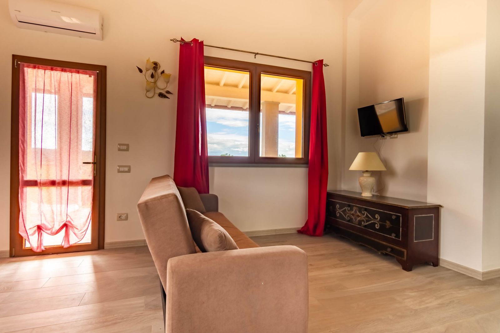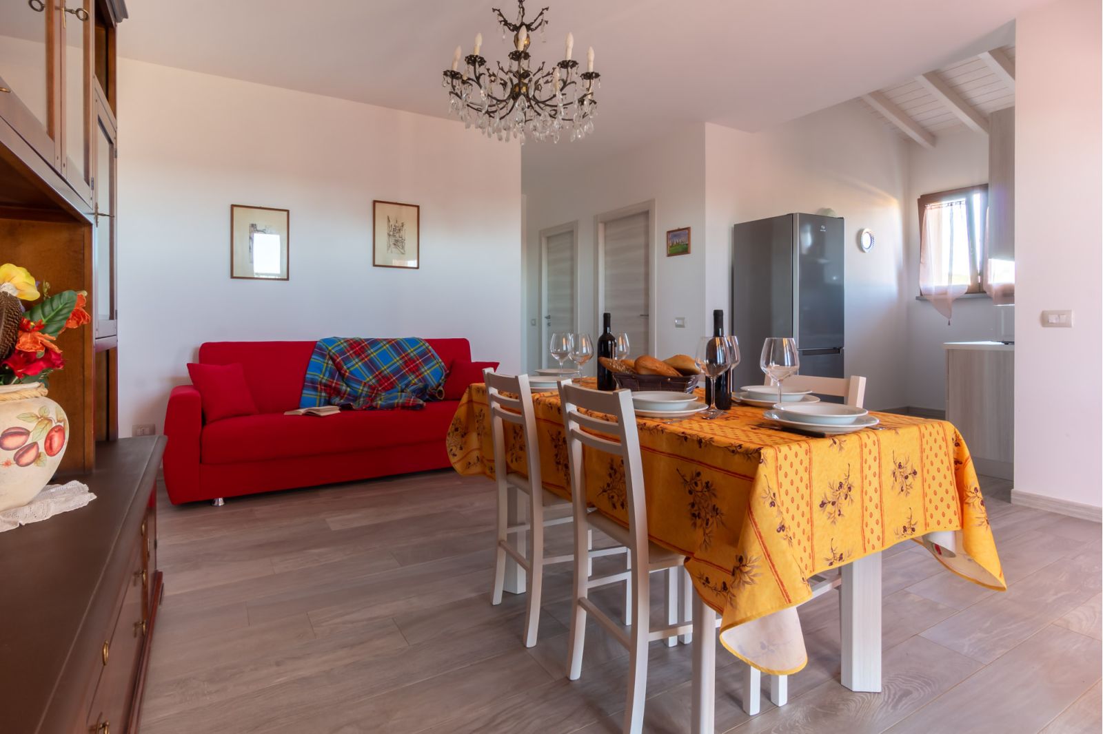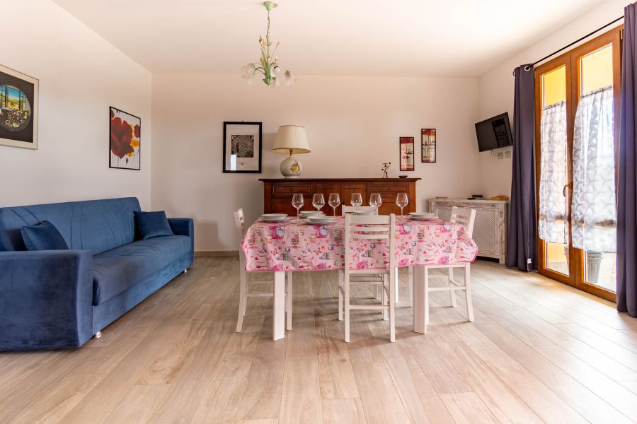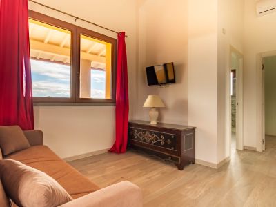 Im Hauptgebäude 'Poggiata' befinden sich drei Dreizimmerwohnungen, zwei im Erdgeschoss und eine im ersten Stock. Die beiden Dreizimmerwohnungen im Erdgeschoss haben zwei Schlafzimmer und zwei Bäder, während die Wohnung im ersten Stock ein großes Einzelbad hat.