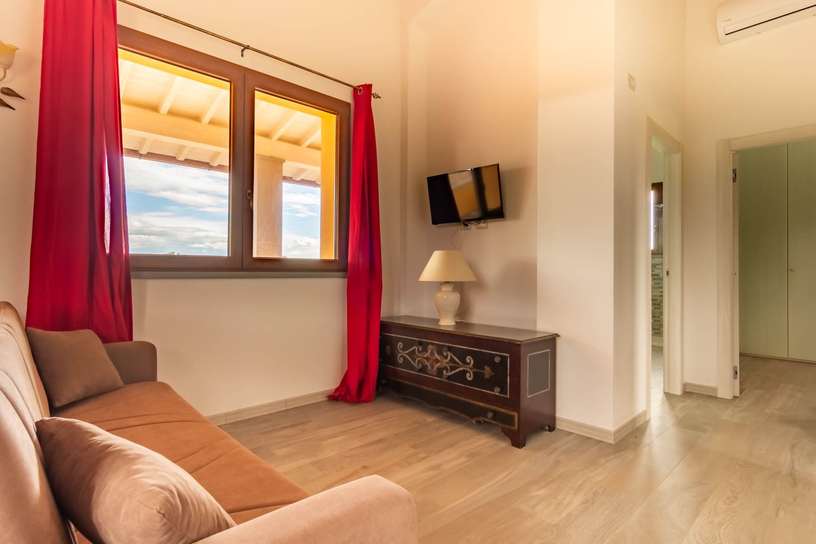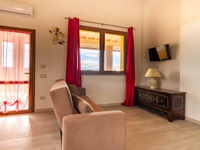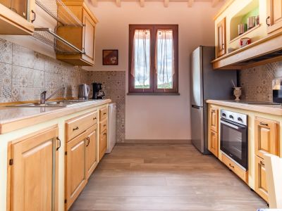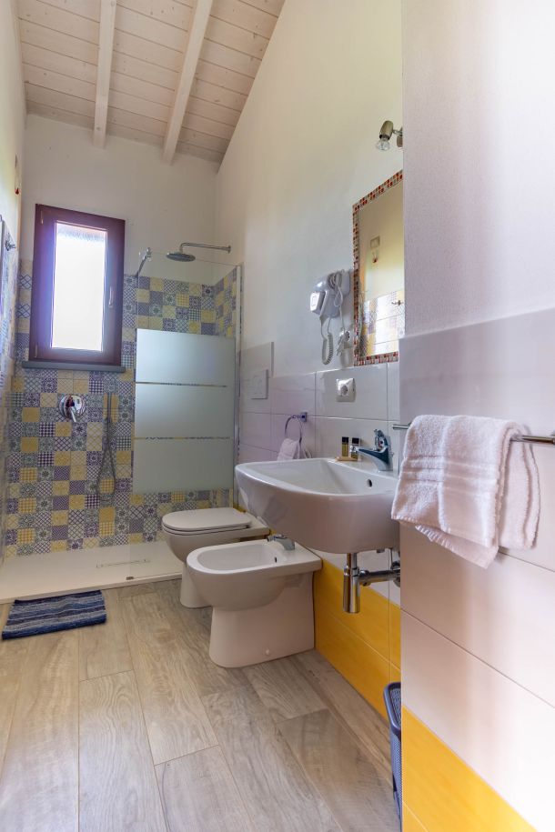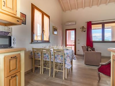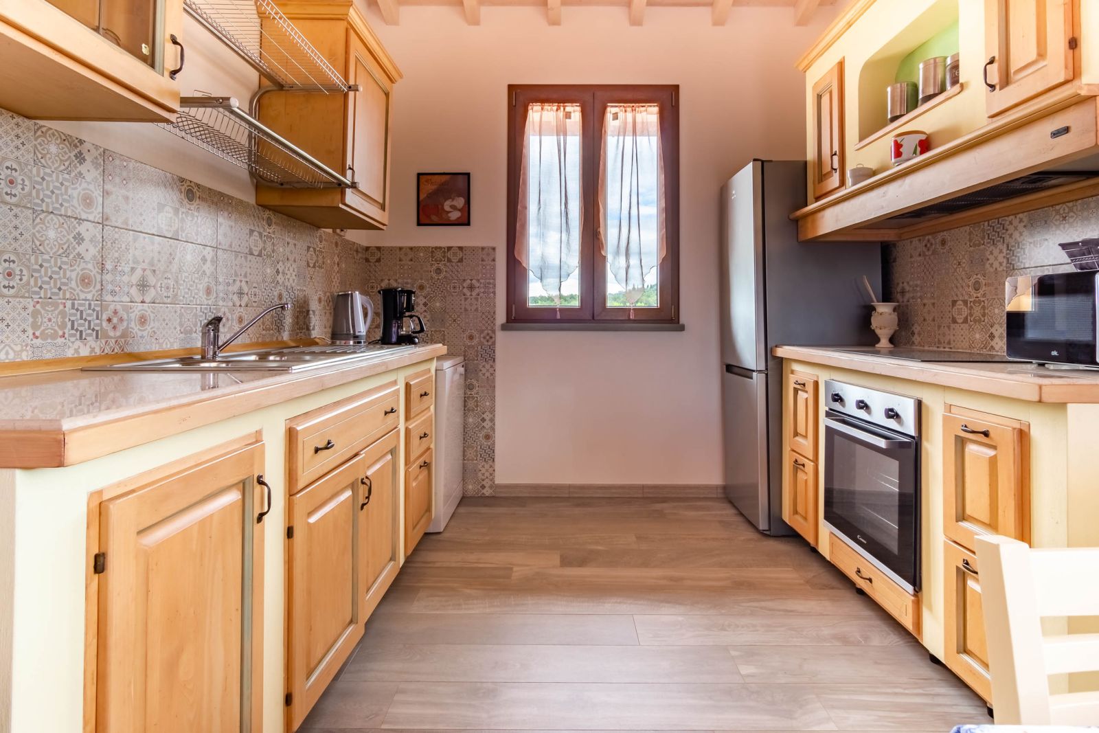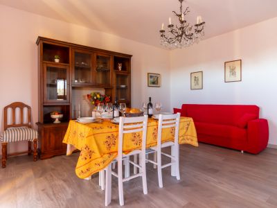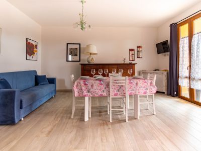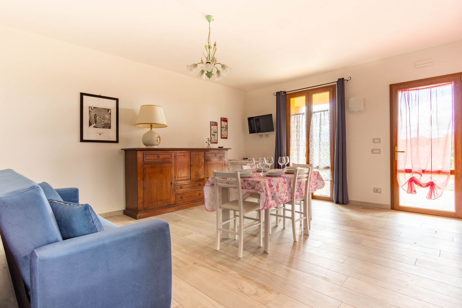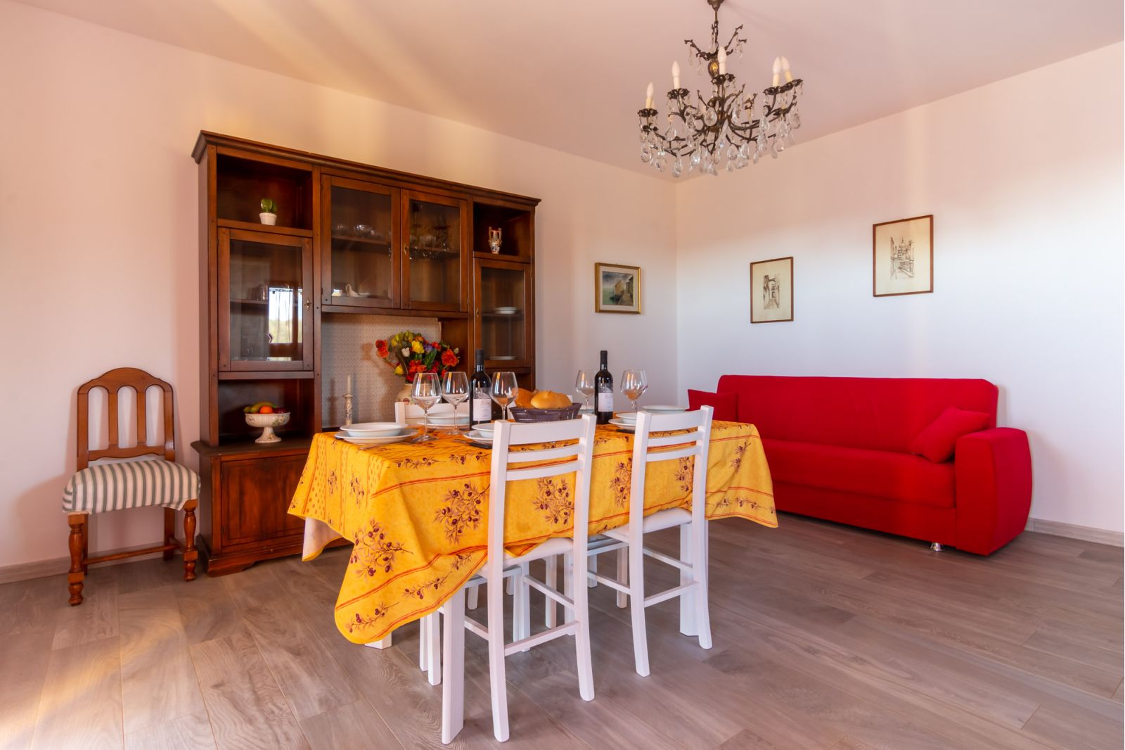 Im Hauptgebäude 'Poggiata' befinden sich drei Dreizimmerwohnungen, zwei im Erdgeschoss und eine im ersten Stock. Die beiden Dreizimmerwohnungen im Erdgeschoss haben zwei Schlafzimmer und zwei Bäder, während die Wohnung im ersten Stock ein großes Einzelbad hat.