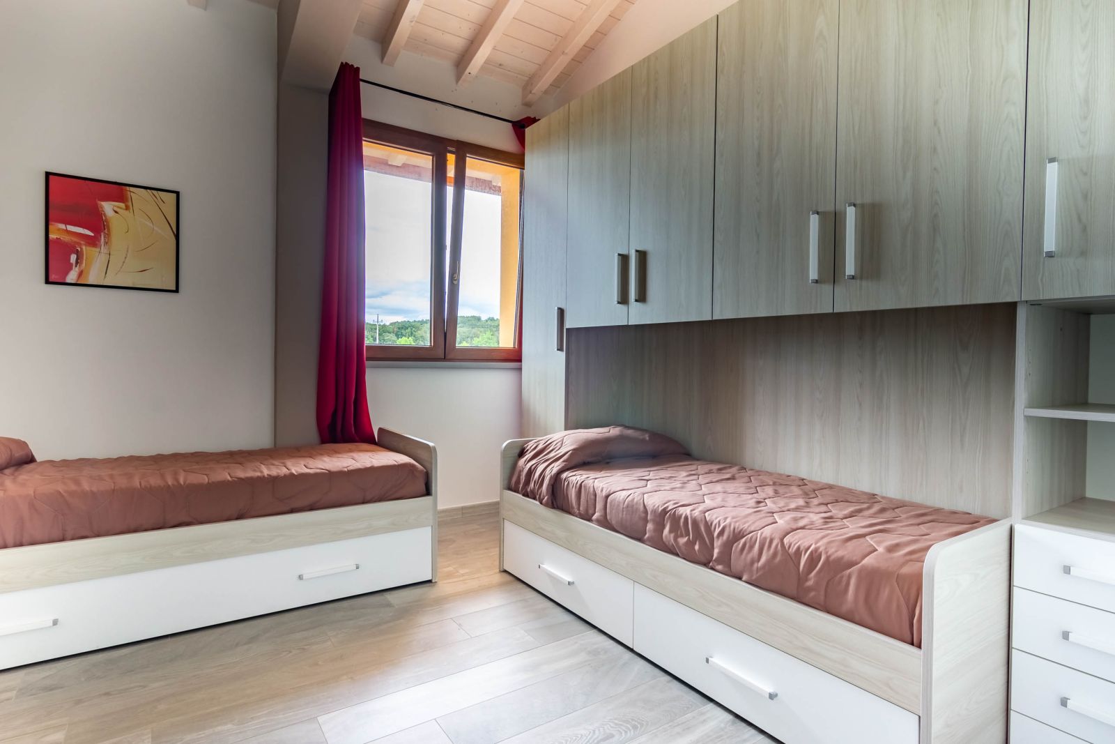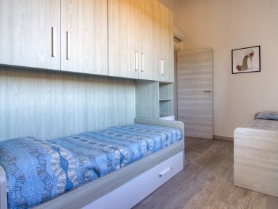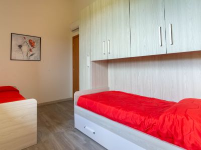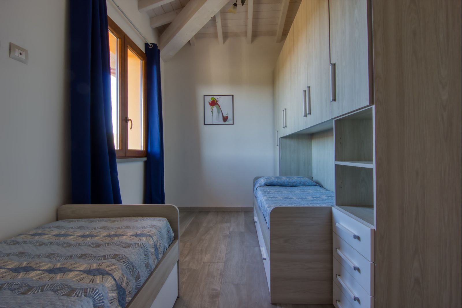 Die Zimmer, eines mit Doppelbett und eines mit der Möglichkeit, getrennte Betten aufzustellen, sind für große Familien geeignet, und jede Wohnung kann sechs Personen beherbergen.