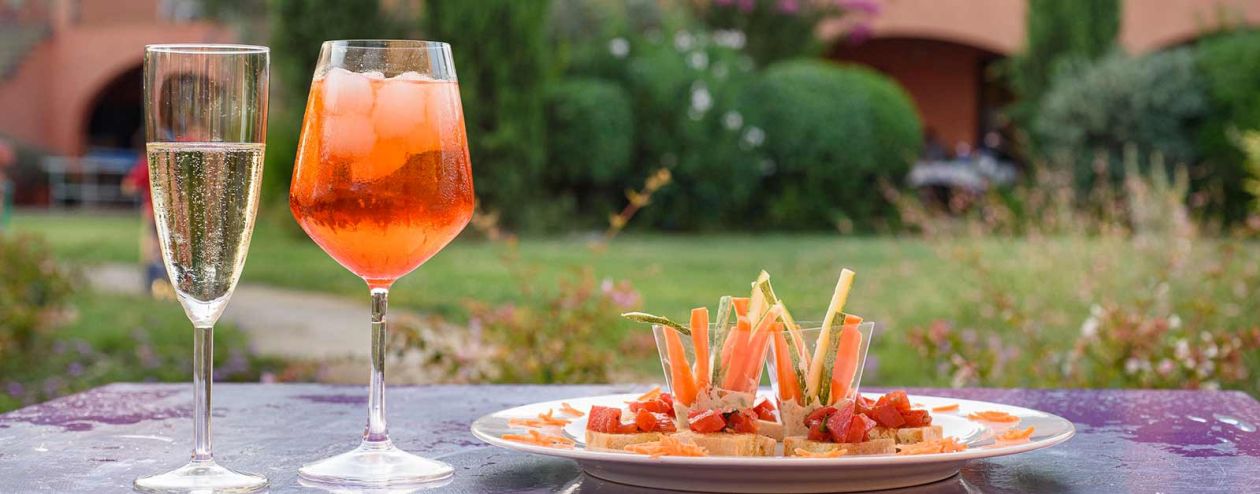 The restaurant offers customers both an air-conditioned room, tastefully furnished with a warm and welcoming atmosphere, and a terrace to dine al fresco on summer evenings, with views of the Gulf of Follonica and the island of Elba. A shaded patio at the restaurant's entrance for a poolside aperitif complements the garden where some games will entertain your children.